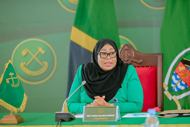 | Mwenyekiti wa Chama cha Mapinduzi CCM na Rais wa Jamhuri ya Muungano wa Tanzania Ndugu. Samia Suluhu Hassan, akiongoza Kikao Maalum cha Kamati Kuu ya Halmashauri Kuu ya Chama cha Mapinduzi (CCM) kilichokutana tarehe 15 Januari, 2024 Mjini Unguja Zanzibar. |